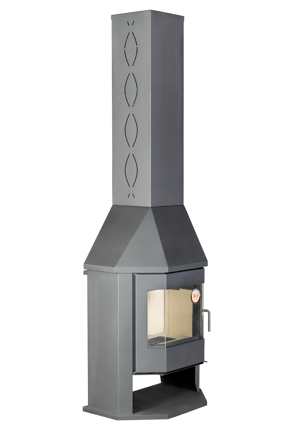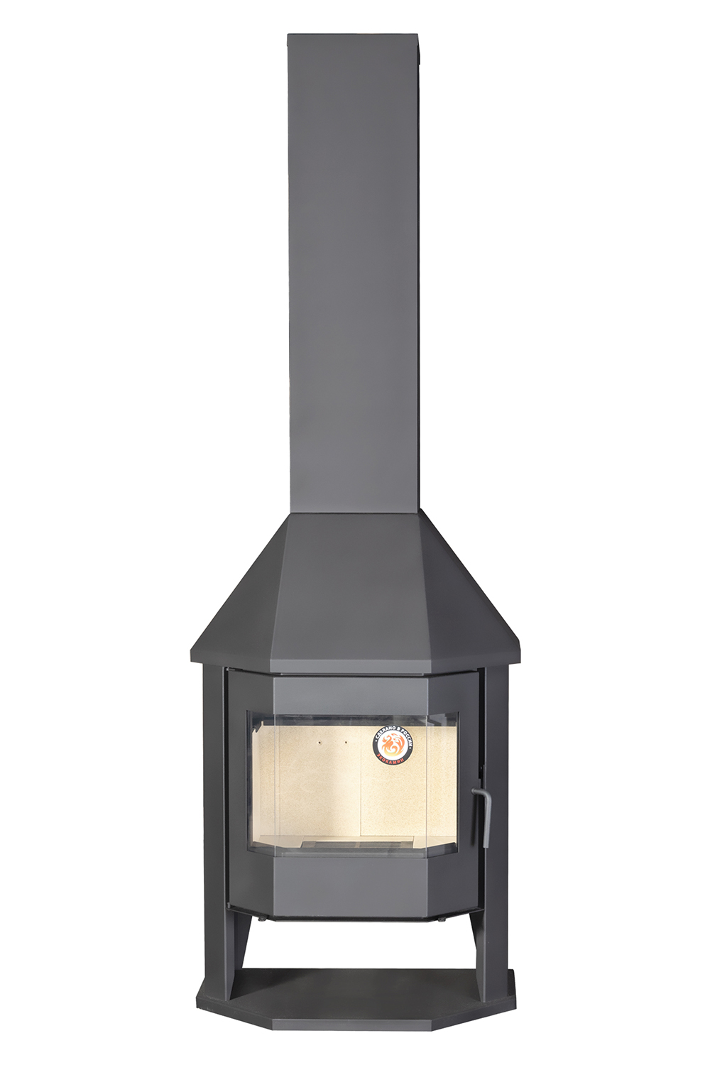 Печь-камин Бавария Мюнхен Гигант предназначен для обогрева помещения объемом до 300 куб. м. Она изготовлена из металла, но внутри топка выложена шамотным кирпичом. С одной стороны, шамот защищает металлические стенки от прогорания, с другой - не дает теплу уходить, повышая качество сгорания дров. Мюнхен Гигант можно назвать полноценным камином. Призматическая дверца позволяет наблюдать за огнём с разных точек комнаты. А металлический кожух скрывает дымоход, если он походит внутри дома. Топочная дверка с большим жаростойким стеклом позволяет наблюдать за тем как горят дрова. Стекло не будет коптиться при нормальной тяге и использовании сухих дров.