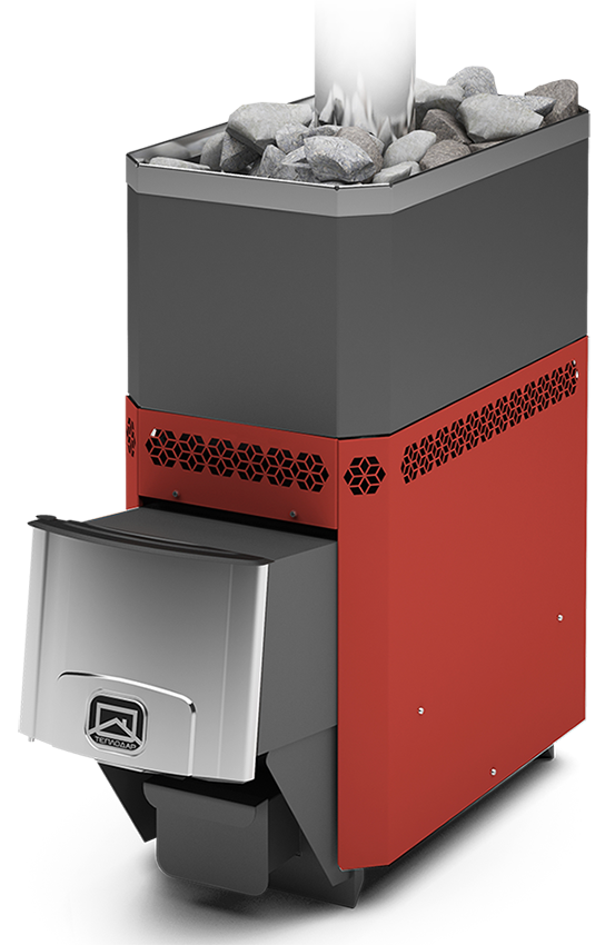 Эта печь работает на дровах, что позволяет создать подлинную атмосферу русской бани. Материал топки из нержавеющей стали обеспечивает высокую степень надежности и долговечности.