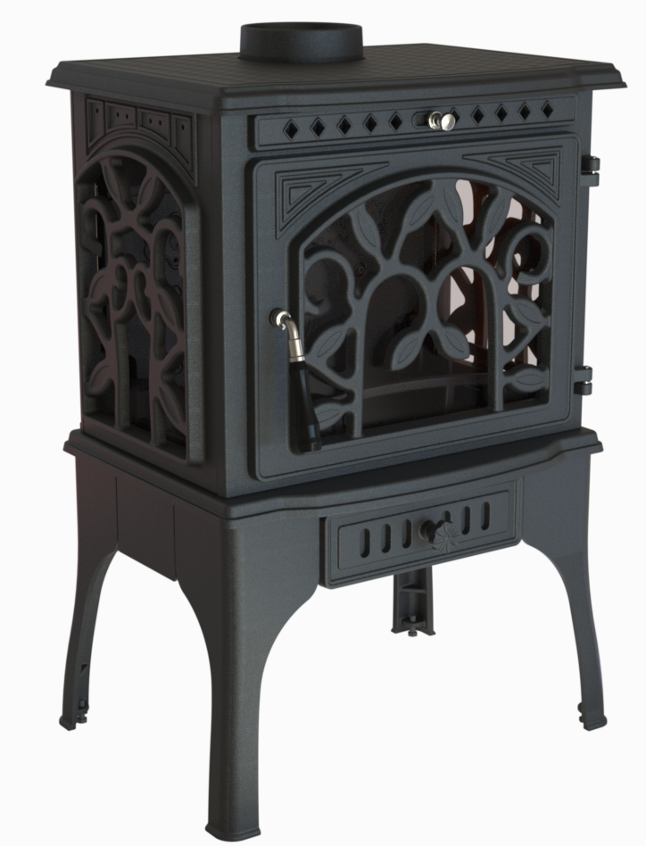 Эта печь работает на дровах, что делает ее идеальным выбором для создания атмосферы уюта и тепла в вашем доме или на даче. Материал топки из чугуна гарантирует эффективную передачу тепла и долгий срок службы. Уникальность модели проявляется в панорамной дверце, которая создает великолепный обзор на огонь, придавая интерьеру особую изысканность.