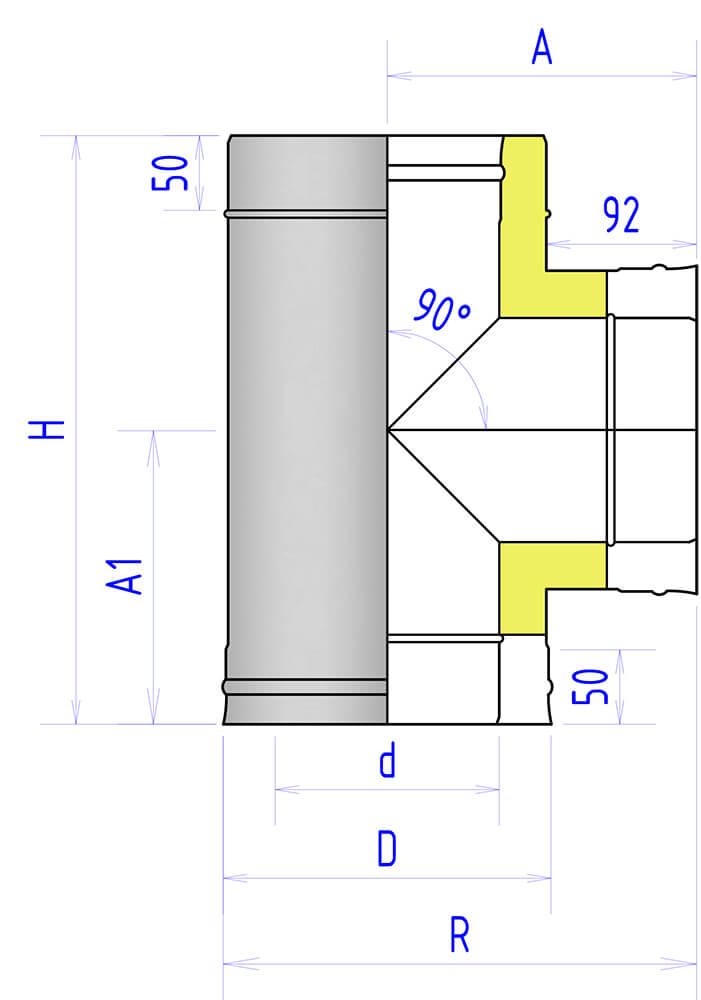 Сэндвич-тройник 2ТР Феникс 90° сталь 304 купить в Минске с доставкой и рассрочкой платежа. -